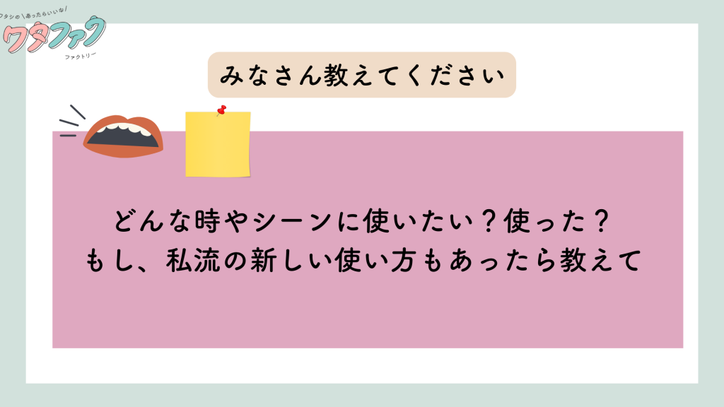 今回はワタファクでモニター企画を実施し、実際に商品を使ってみた会員のみなさんに集まっていただき座談会を開催。使ってみて良かった点やリアルな使い方、価格やパッケージへの率直な意見などを語り合っていただきました。