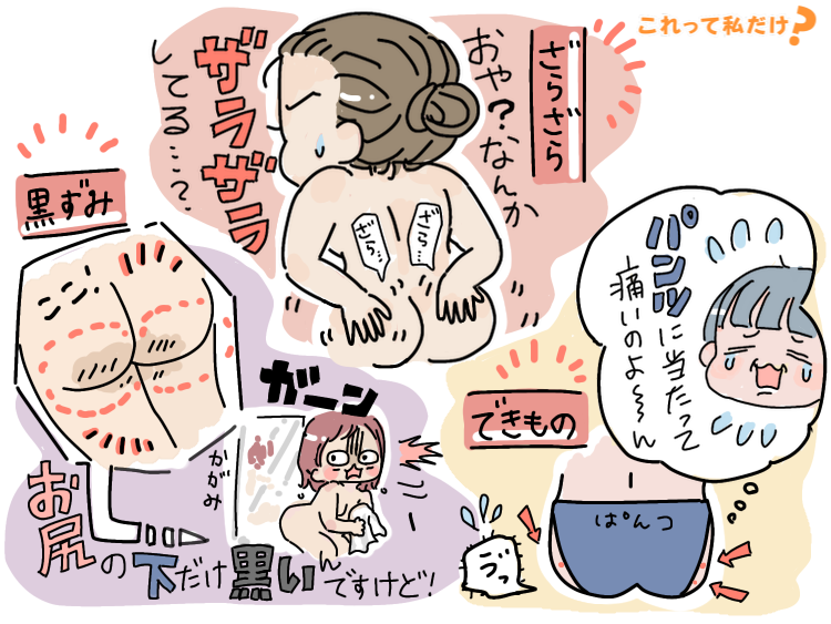 お尻のブツブツ、ざらつき、黒ずみが気になる…これって私だけ?